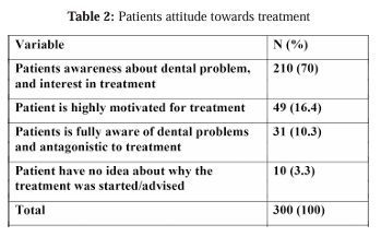Additionally, questions on the patient’s awareness of the oral issue and desire for orthodontic treatment were posed. The results are shown in table 2.