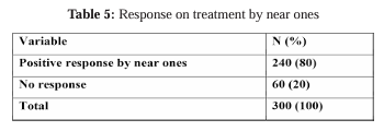 80% (240) of the patients said that their loved ones had given them encouragement or were thrilled with the treatment’s results. The remaining 20% (60) individuals reported no specific response from those close to them (Table 5).