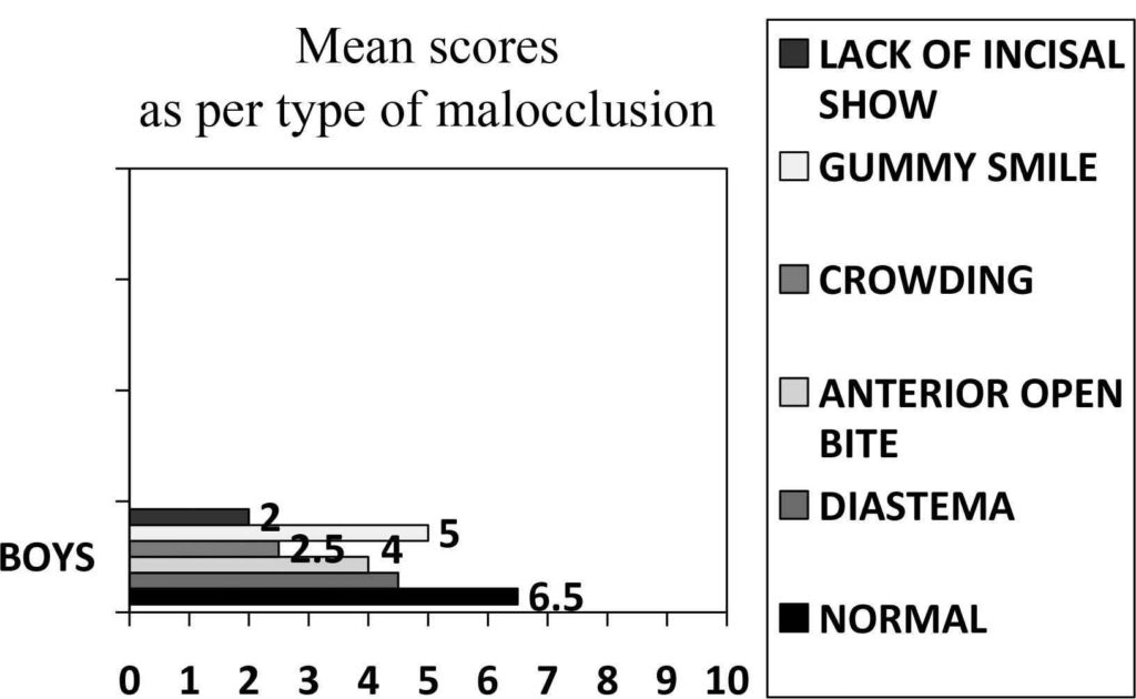 Figure II: Mean scores as per type of malocclusion, in boys.