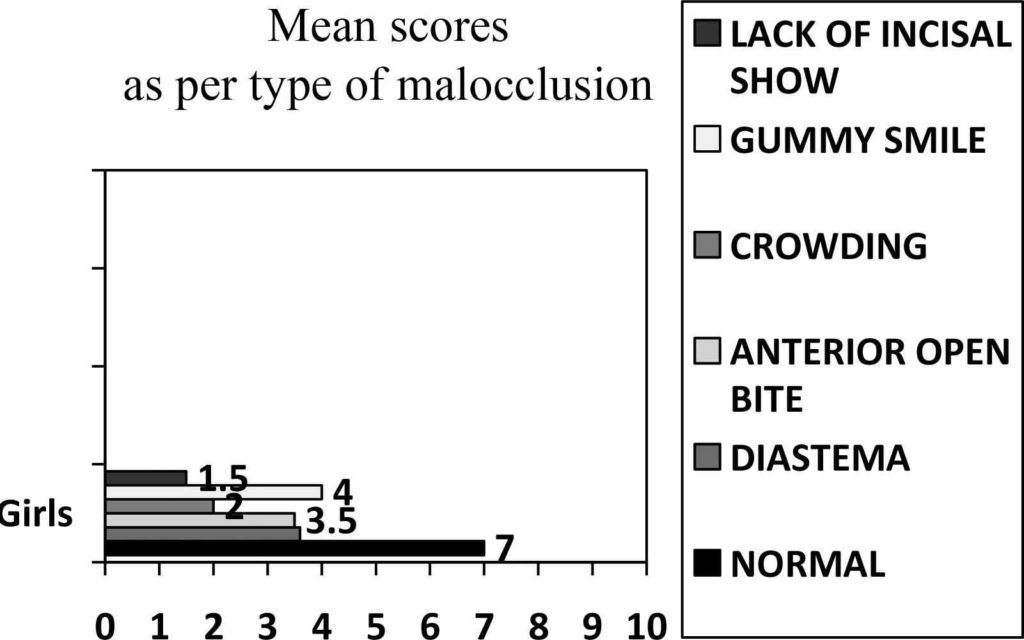 Figure III: Mean scores as per type of malocclusion, in girls.